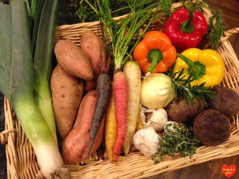 -1 organic beet (Note: the beet color bleeds onto the other vegetables. This isn’t a problem, but omit if this will bother you.)
