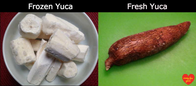 2. -*If using fresh yuca it must be peeled and cut into 3 pieces before boiling. See: How to peel fresh yuca. Frozen yuca is already peeled and cut into pieces.