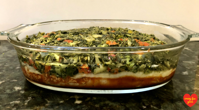 5. -Spoon vegetable layer evenly over second yuca layer.