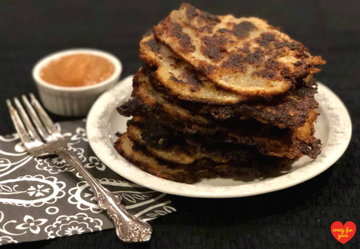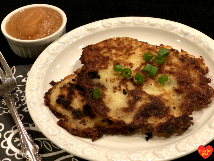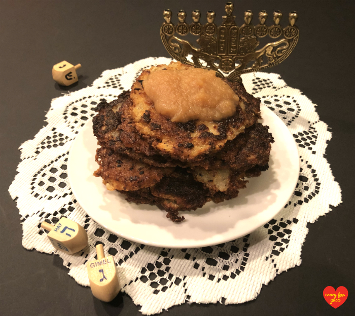 I used Goya Frozen Grated Cassava, which made these latkes super easy to make – no grating! They can also be made by grating fresh yuca/cassava. So simple! So yummy! Especially with a dollop of applesauce!