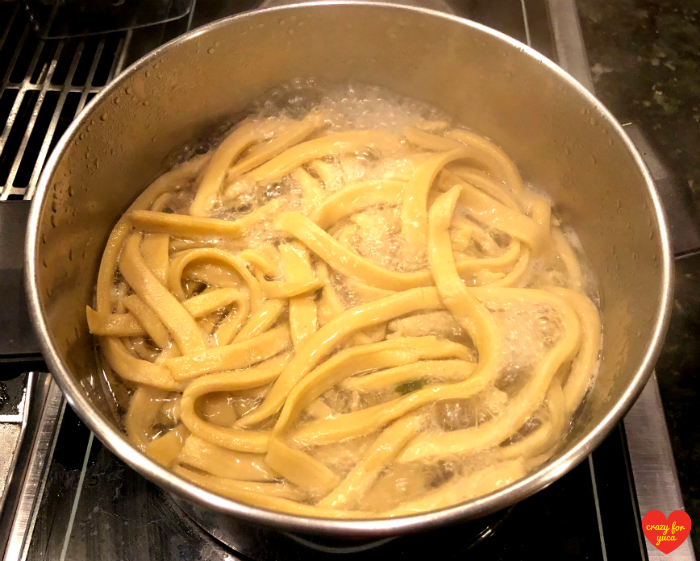 3. Once water is boiling, add peeled, cut yuca to water and boil for 20 minutes, until fork tender. *Do not over-boil or you will have very sticky, mushy yuca that will be difficult to work with!  *Ensure yuca is fully covered by water throughout boiling.