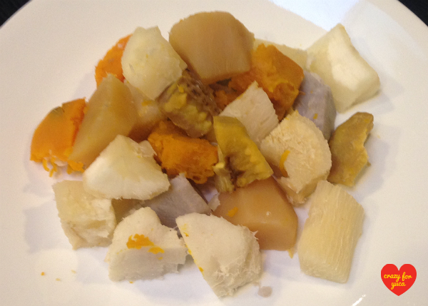 Once fork tender (about 15-30 minutes depending on the size of the yuca chunks), drain and allow to stand until it’s cool enough to handle.