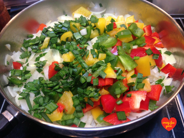 -Meanwhile, mince organic garlic cloves and scallions. (These will be added to the boiled yuca.)