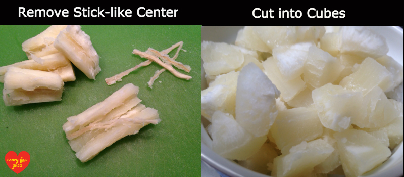 Remove stick-like stem that runs through the center of each piece of yuca.