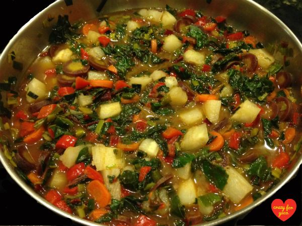1. *If using fresh yuca (cassava) it must first be peeled and boiled before adding it to the rest of the vegetables in this recipe. See About Yuca: How to Peel Fresh Yuca for step by step directions. Frozen yuca is already peeled, but must also first be boiled.